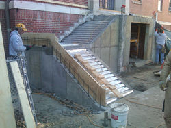 For this project at the Canandaigua Veteran's Medical Center, Welch Construction, Inc. replaced the concrete and brick steps at numerous locations on campus. The existing steps, associated brick, and handrails were all removed. After removal, Welch Construction, Inc. formed and poured new footings, walls, and steps. We then installed bricks to match the building, terracota stone caps, new safety treads on each step, and installed new handrails.